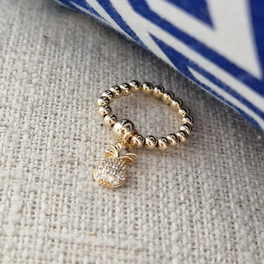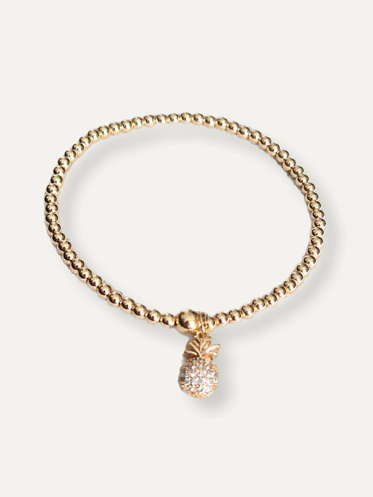 Gold Bobble Bracelet - Pave Pineapple Charm