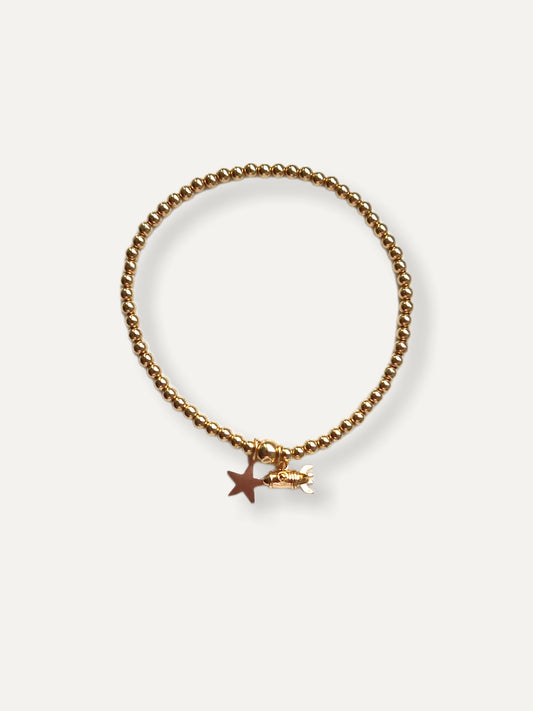 Gold Bobble Bracelet - Gold & Silver 'Travel' Charms