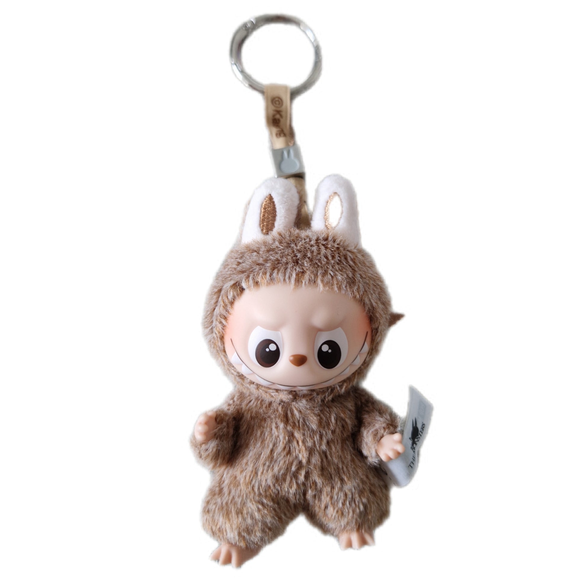 Characters:Miniature, furry Labubu plushes, each holding a letter or symbol.