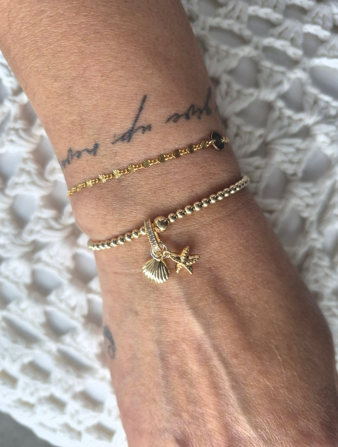 Gold Bobble Crystal Charm Hanger - Shell & Starfish